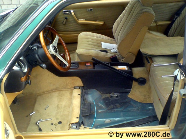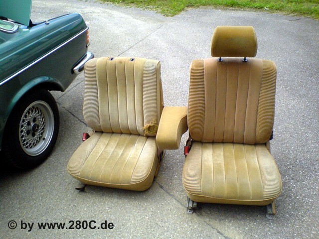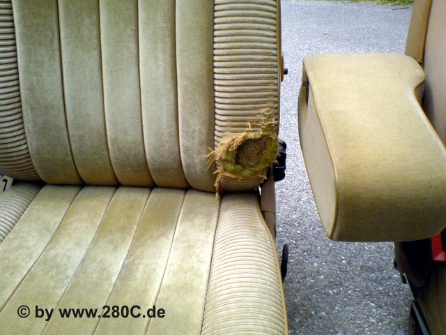 Vom W123 Club erfuhr ich, dass es ein Schlachtcoupe gab, welches u.a. auch über eine Velourausstattung in Dattel der zweiten Serie verfügte. Der Fahrersitz war noch gut und hatte sogar noch eine Mittelarmlehne. Nach der ersten Besichtigung der Innenausstatung stand für mich fest, dass ich gefunden hatte wonach ich suchte. Zwar konnte man nicht mehr alles von der Innenausstattung verwenden wie z.B. die Hutablage, aber der Fahrersitz war für mich ein wichtiges Puzzelteil. Denn bisher hatte ich für meinen Fahrersitz mit der defekten Seitenwange noch keinen Ersatz gefunden. An dieser Stelle kann man sagen: " Es lohnt sich im W123 Club zu sein", herzlichen Dank an den Stammtisch Baden.